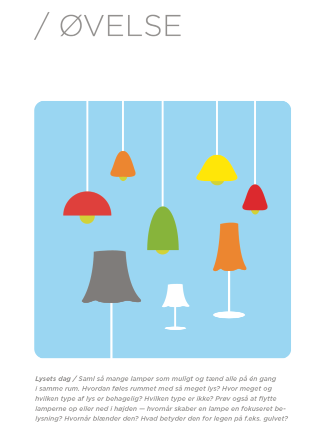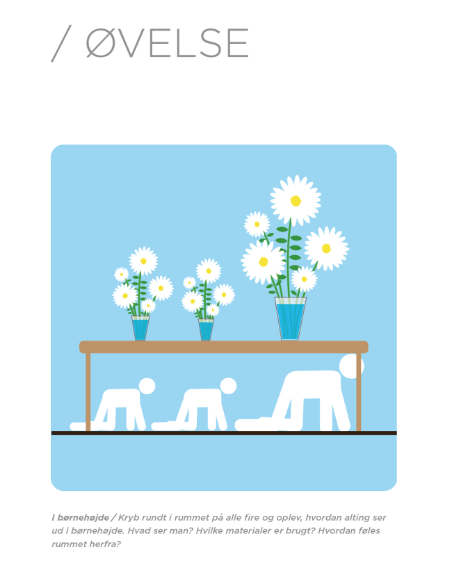 Øvelserne er fra bogen Læringsrum af Bodil Bøjer og Rune Fjord, udgivet hos Akademisk Forlag i 2013. Bogen handler om, hvad omgivelserne betyder for, at børn har det godt. Bogen beskriver, hvordan man kan skabe stor forandring, hvis man tænker rum og indretning med i det pædagogiske arbejde.