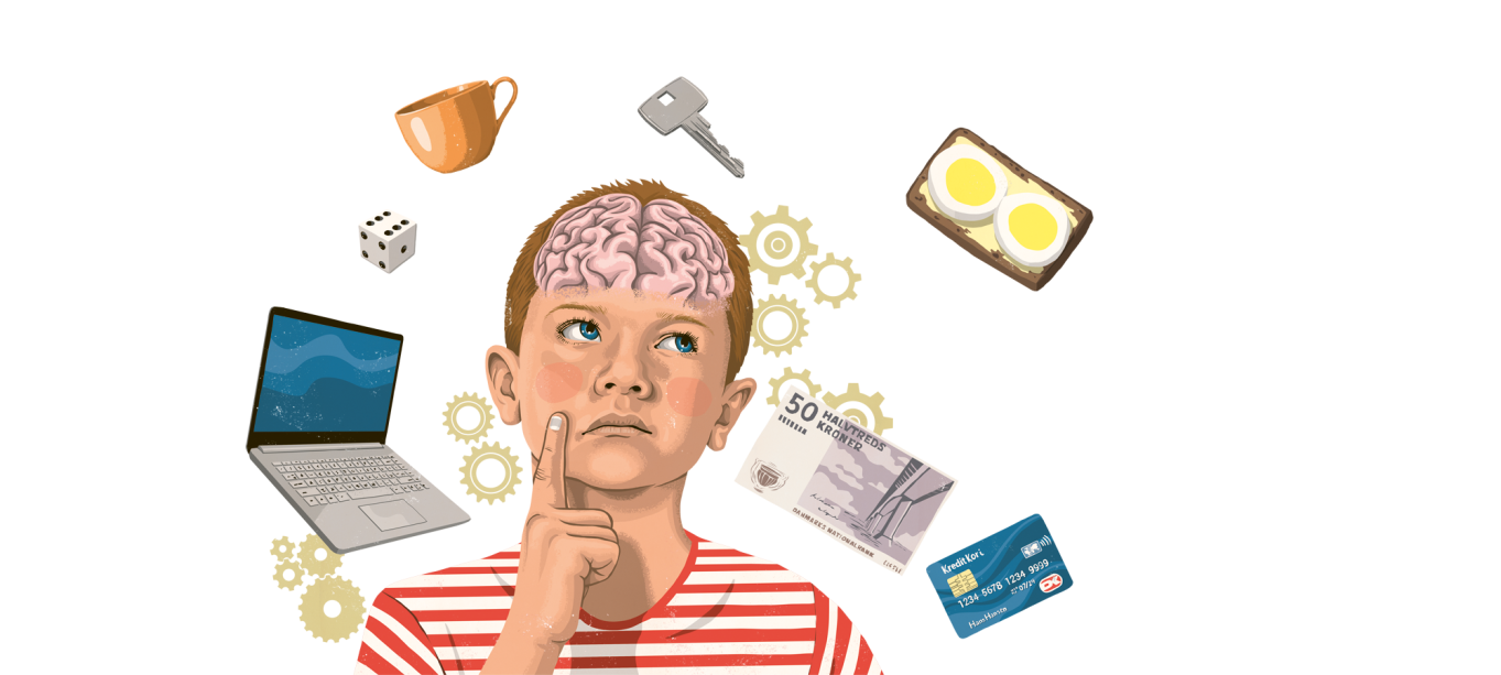SÅDAN GØR DU: Læg et antal genstande frem på bordet, og bed eleverne kigge på tingene og huske så mange som muligt. Herefter dækkes genstandene til, og nu går legen ud på at nævne så mange af genstandene som muligt. Prøv også at lege legen i hold med mange flere genstande. Det kan være, at du som lærer har sørget for, at genstandene kan deles i kategorier. Tal efterfølgende om, hvilke hukommelsesstrategier eleverne lavede selv, og hvilke de lavede som gruppe. Tal også om, hvilke strategier der var gode, og hvilke der ikke fungerede så godt.